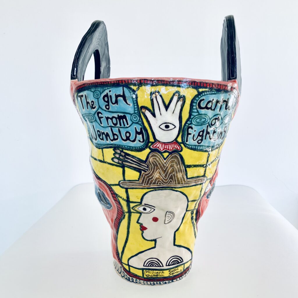 Marice Cumber is an English artist living and working in London. Her ceramics explores notions of the self and identity. Central to Cumber’s work are reaffirming personal messages and statements, both to the artist and her audience. These messages, taken from personal diaries and notebooks, summarise moments of reflection, contemplation, encouragement and acceptance as the artist is observing herself and commenting on who she is and what is within her.